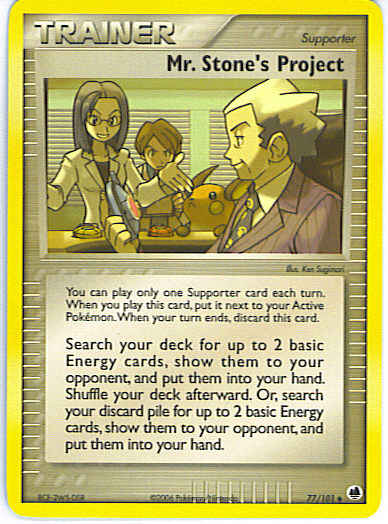 Evne Search your deck for up to 2 basic Energy cards, show them to your opponent, and put them into your hand. Shuffle your deck afterward. Or, search your discard pile for up to 2 basic Energy cards, show them to your opponent, and put them into your hand.