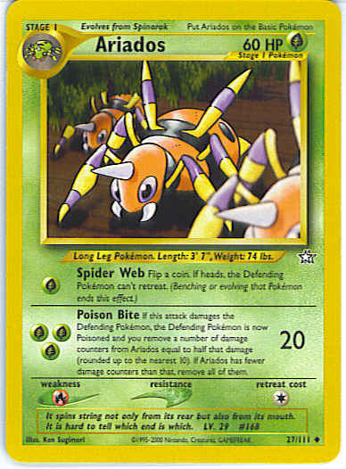 [G] Spider Web - Flip a coin. If heads, the Defending Pokemon can't retreat. (Benching or evolving that Pokemon ends this effect.)