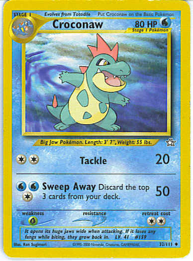Type | Water | Pokemon serie | Neo Genesis | Stadie | Stage 1 | HP | 80 | Sjældenhed | Uncommon | Tilbagetrækning | 2 | Svaghed | G | Kortnummer | 32 | Evne |