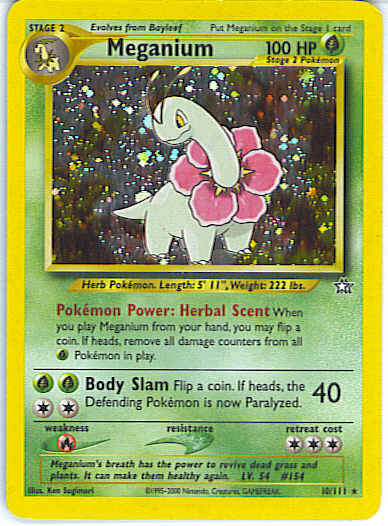 Type | Grass | Pokemon serie | Neo Genesis | Stadie | Stage 2 | HP | 100 | Sjældenhed | Rare | Tilbagetrækning | 3 | Svaghed | R | Kortnummer | 10 | Evne |