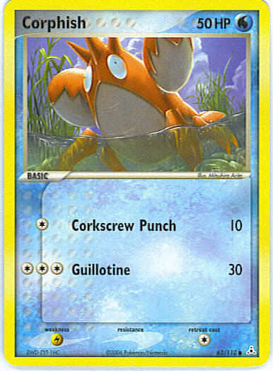 Type | Water | Pokemon serie | Holon Phantoms | Stadie | Basic | HP | 50 | Sjældenhed | Common | Tilbagetrækning | 1 | Svaghed | L | Kortnummer | 62 | Evne | [C] Corkscrew Punch (10) [CCC] Guillotine (30) | Evne2 | [C] Corkscrew Punch (10) [CCC] Guillotine (30) | Kunstner | Atsuko Nishida |