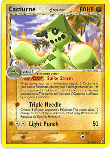 Type | Fighting | Pokemon serie | Crystal Guardians | Stadie | Stage 1 | HP | 80 | Sjældenhed | Rare | Tilbagetrækning | 1 | Svaghed | R | Kortnummer | 15 | Evne |